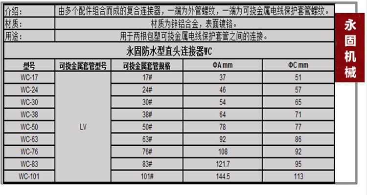 防水型直頭連接器WC